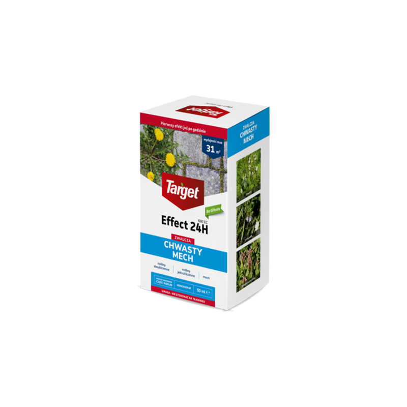 Effect 24H 680 EC to pierwszy produkt pochodzenia roślinnego do zwalczania chwastów i odrostów korzeniowych w ogrodach działkowych i przydomowych. Produkt nie zawiera glifosatu. Za pomocą Effect 24H można skutecznie zwalczać mech na powierzchniach twardych i półprzepuszczalnych, takich jak podjazdy czy ścieżki. Produkt niszczy zielone, naziemne części roślin – rozbija ich struktury naskórka, powodując szybkie odwodnienie i zasychanie. Effect 24H polecany jest również do stosowania w uprawach drzew i krzewów owocowych – z uwagi na naturalne pochodzenie preparatu, w owocach nie będzie pozostałości niepożądanych substancji.