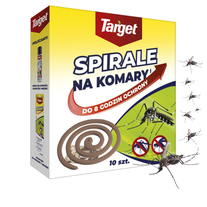 Spirale przeznaczone do zwalczania komarów i meszek na terenach otwartych takich jak ogródki, tarasy itp. Jedna spirala działa przez 8 godzin. Efekt bójczy uzyskuje się po 10 minutach od zastosowania.