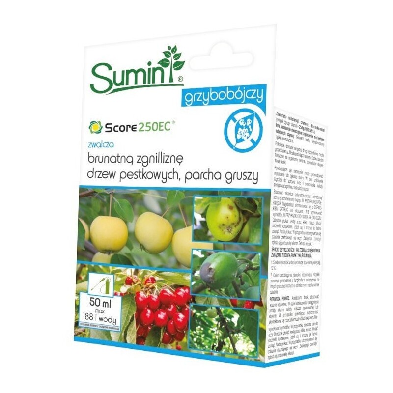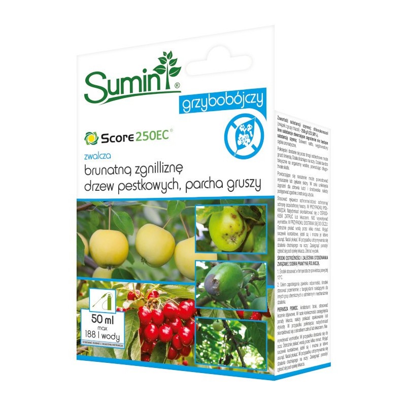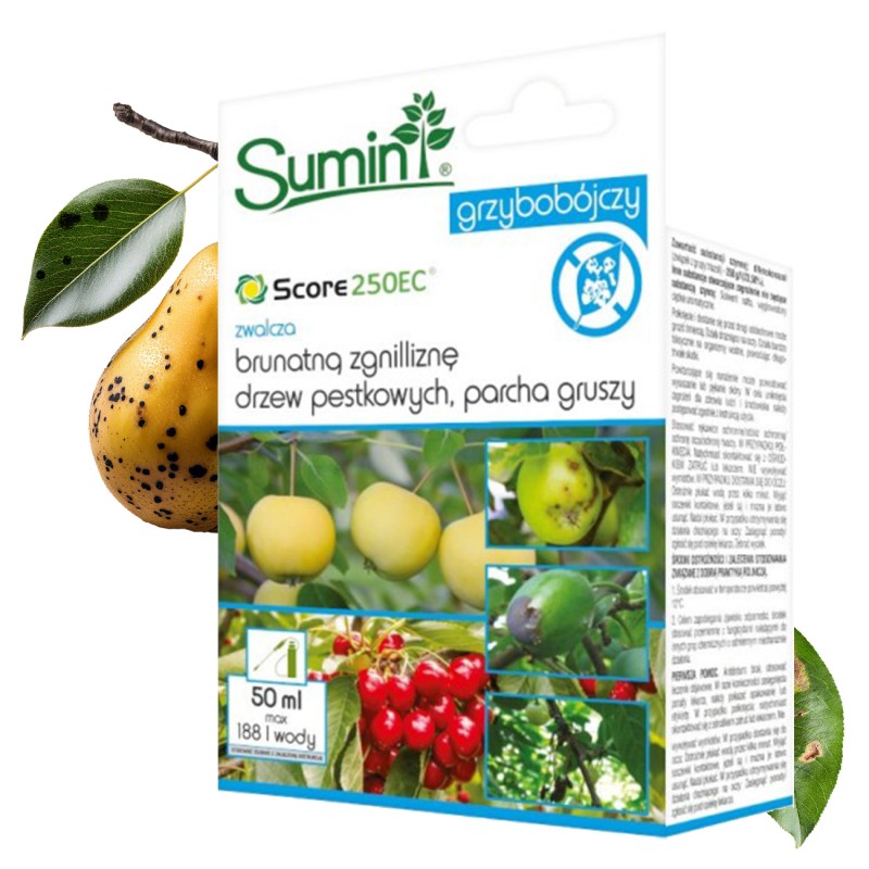 Score 250 EC to profesjonalny środek grzybobójczy o działaniu systemowym, przeznaczony do ochrony drzew owocowych przed chorobami grzybowymi. Zawiera substancję czynną difenokonazol z grupy triazoli, skutecznie zwalczając takie choroby jak parch jabłoni, parch gruszy oraz brunatna zgnilizna drzew pestkowych.