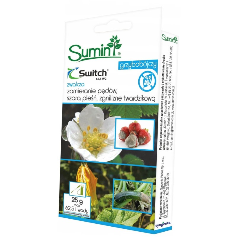 Switch 62,5 WG to zaawansowany środek grzybobójczy w formie granul do sporządzania zawiesiny wodnej, charakteryzujący się działaniem wgłębnym i powierzchniowym. Przeznaczony jest do stosowania zapobiegawczego i interwencyjnego w ochronie szerokiej gamy upraw przed różnorodnymi chorobami grzybowymi.