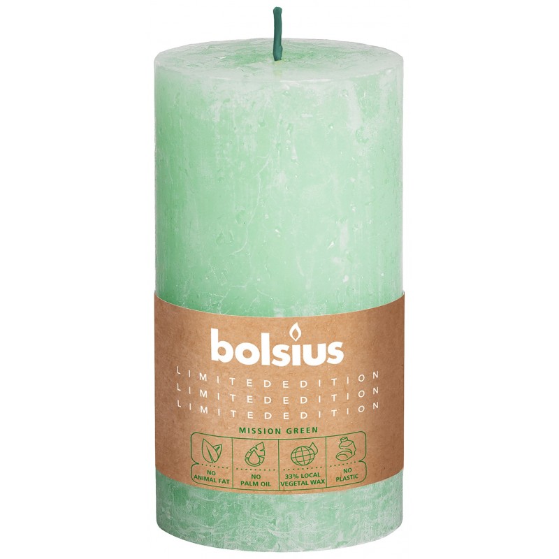 Świeca rustykalna z serii Divine Earth w kolorze wodykształcie walca, bezzapachowa, o wysokości 13cm, średnicy 6,8cm i czasie palenia do 54 godzin BOLSIUS.