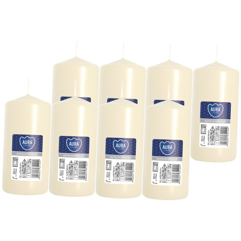 Świeca walec BISPOL Aura 20H 10CM SW50/100 ECRU 8szt.