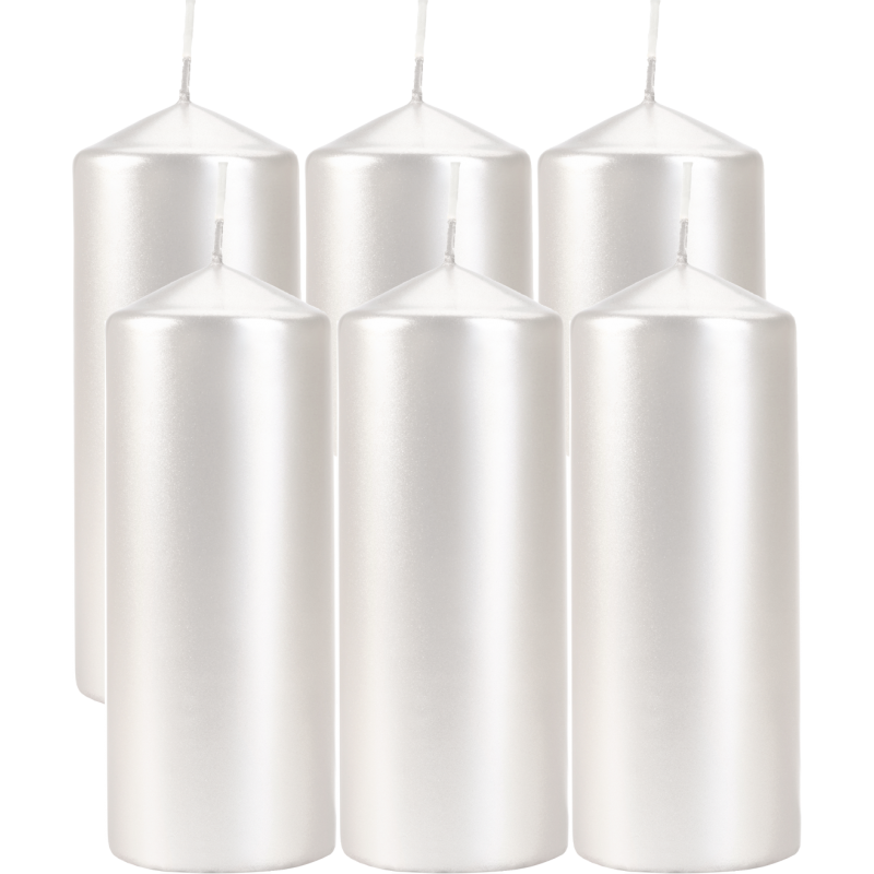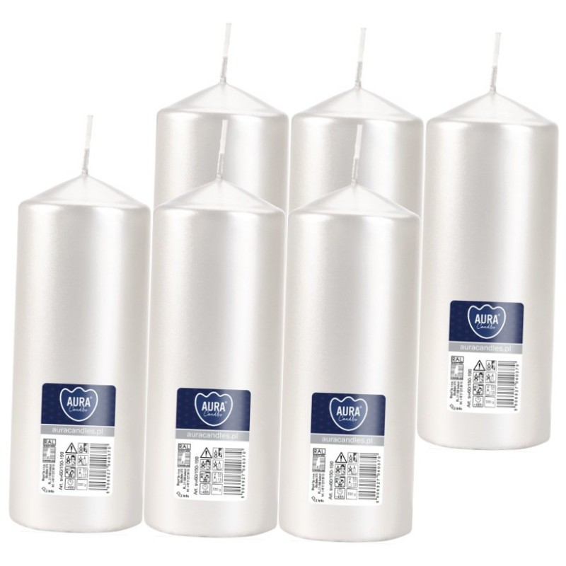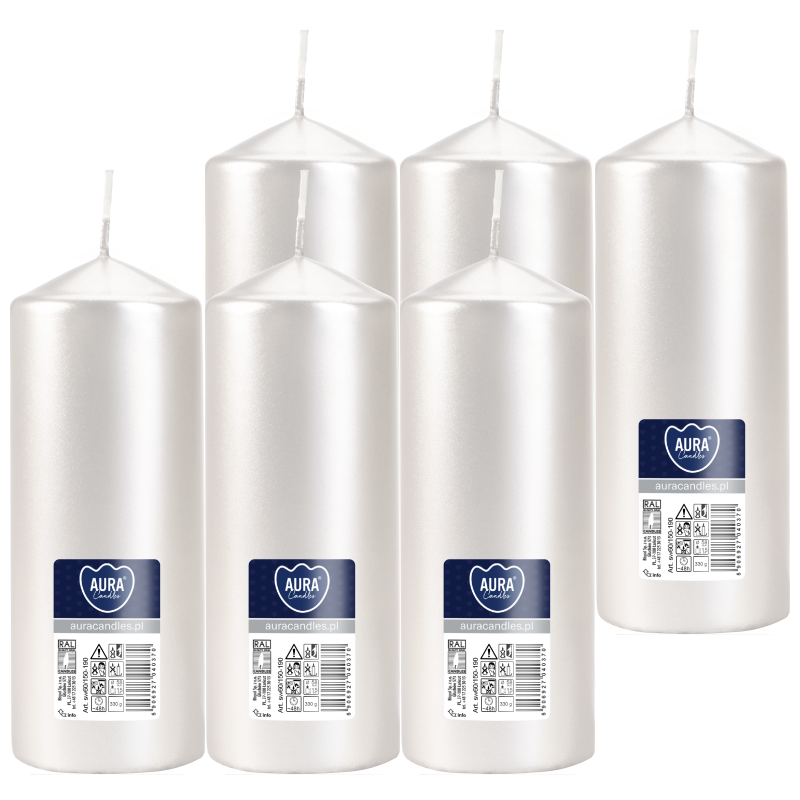 Świeca dekoracyjna w kolorze białej perłykształcie walca, bezzapachowa o wysokości 15cm, średnicy 5,8cm i czasie palenia do 48 godzin BISPOL. Pakowana po 6szt. jednostkowych w opakowaniu zbiorczym.