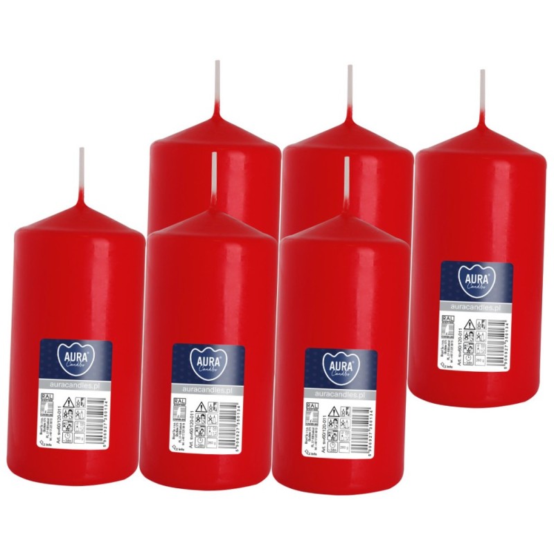 Świeca walec BISPOL Aura 38H 12CM SW60/120 CZERWONA 6szt.