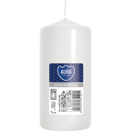 Biała świeca dekoracyjna w kształcie walca, bezzapachowa o wysokości 10cm, średnicy 4,8cm i czasie palenia do 20 godzin BISPOL.