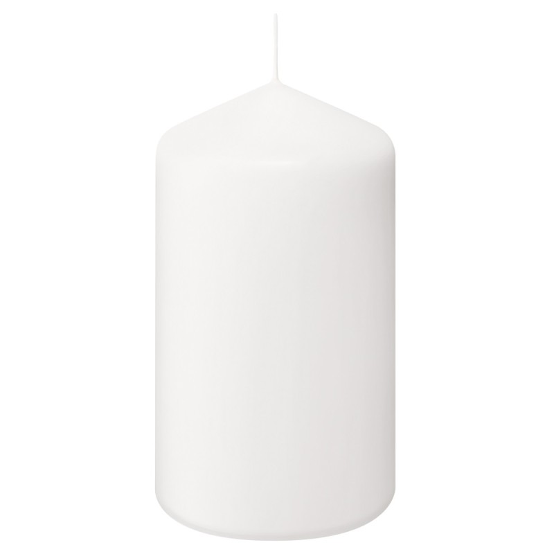 Pieńkowa świeca dekoracyjna w kolorze białym, bezzapachowa o wysokości 15cm, średnicy 7,8cm i czasie palenia do 65 godzin BOLSIUS.