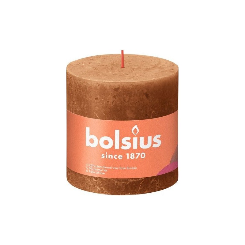 Świeca rustykalna w kolorze korzennego brązu, kształcie walca, bezzapachowa, o wysokości 10cm, średnicy 10cm i czasie palenia do 62 godzin BOLSIUS.
