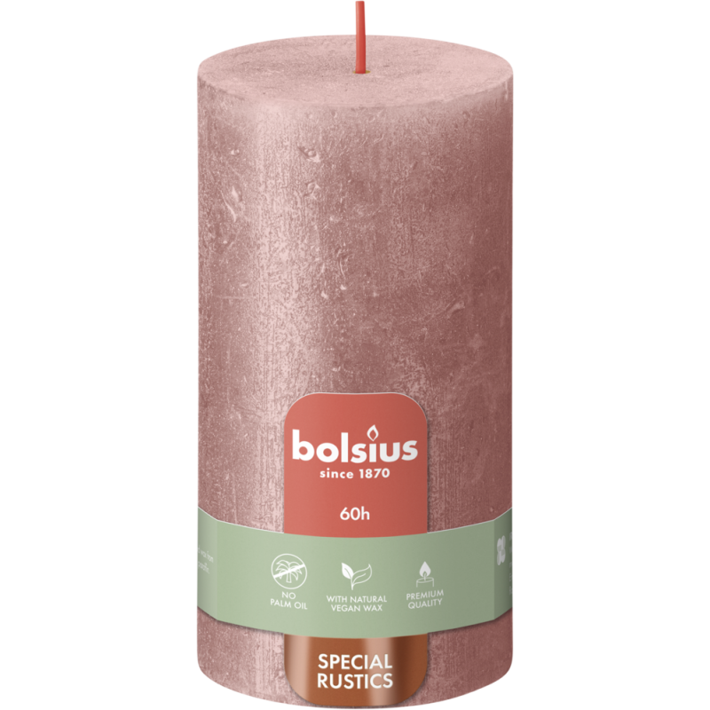 Świeca rustykalna z serii Special w kolorze różowym, kształcie walca, bezzapachowa, o wysokości 13cm, średnicy 6,8cm i czasie palenia do 60 godzin BOLSIUS.