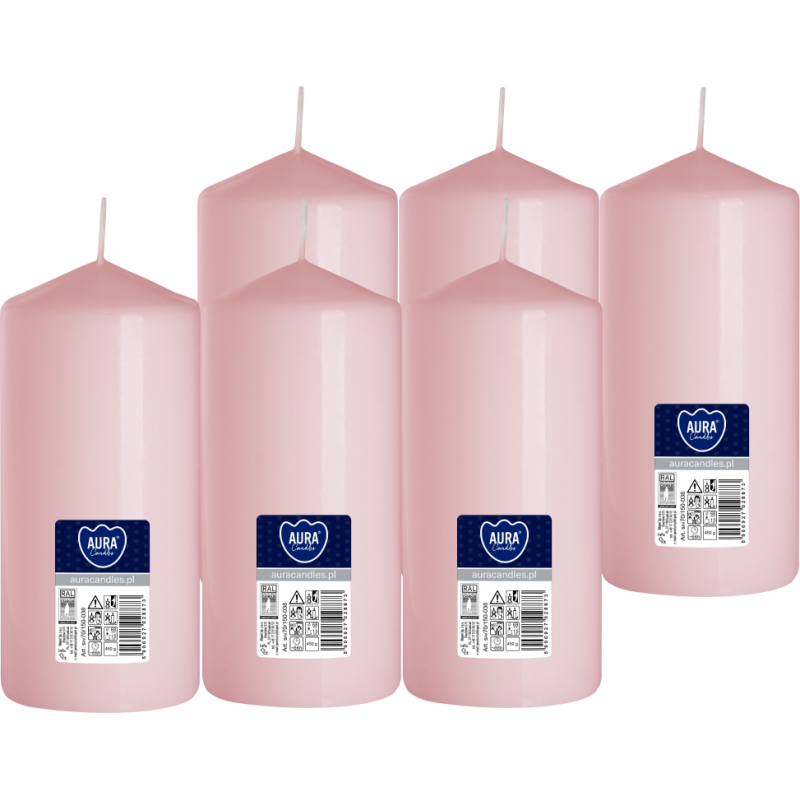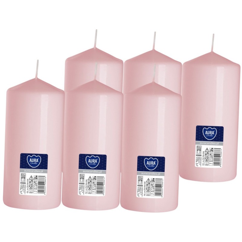 Świeca dekoracyjna w kolorze jasnego różu, kształcie walca, bezzapachowa o wysokości 15cm, średnicy 6,8cm i czasie palenia do 66 godzin BISPOL. Pakowana po 6szt. jednostkowych w opakowaniu zbiorczym.