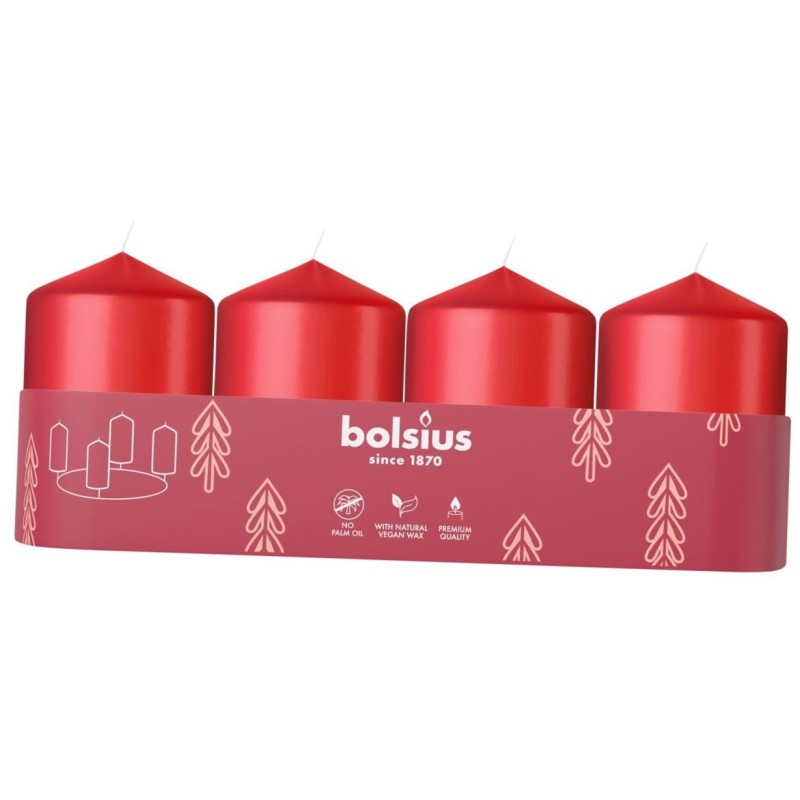 Świeca pieńkowa BOLSIUS Essentials 7H 6CM 4szt. DELIKATNA CZERWIEŃ