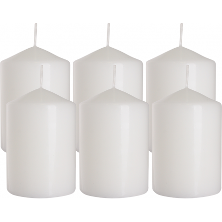 Biała świeca dekoracyjna w kształcie walca, bezzapachowa o wysokości 10cm, średnicy 6,8cm i czasie palenia do 44 godzin BISPOL. Pakowana po 6szt. jednostkowych w opakowaniu zbiorczym.