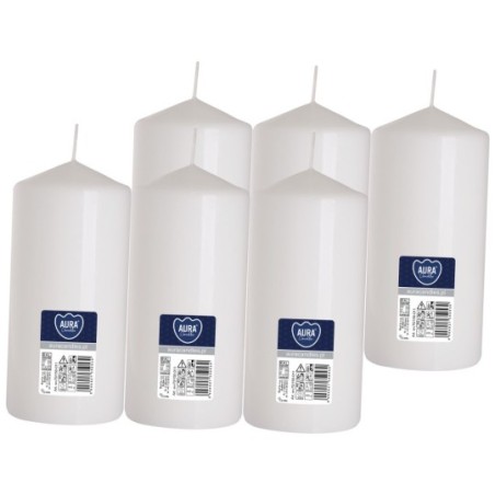 Biała świeca dekoracyjna w kształcie walca, bezzapachowa o wysokości 15cm, średnicy 6,8cm i czasie palenia do 66 godzin BISPOL. Pakowana po 6szt. jednostkowych w opakowaniu zbiorczym.