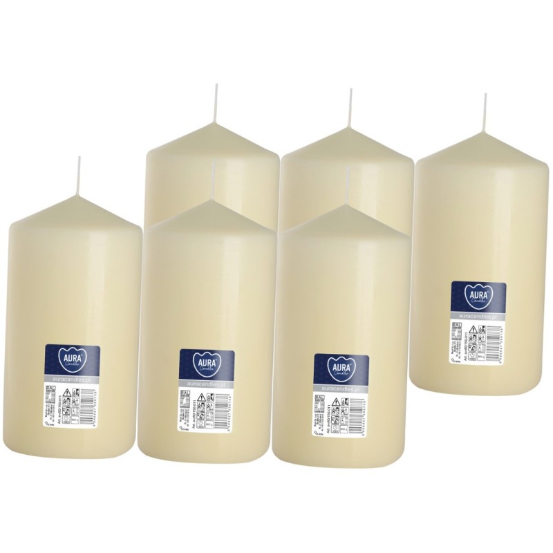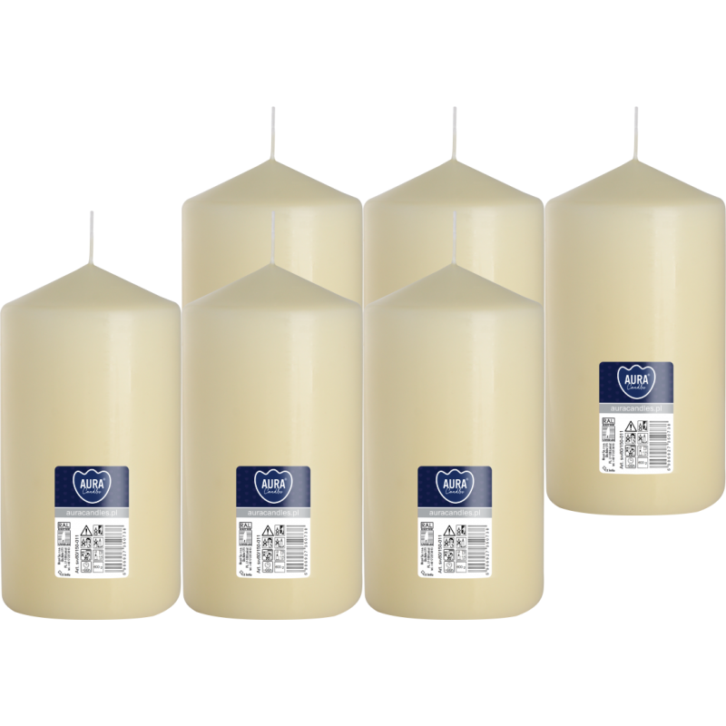 Kremowa świeca dekoracyjna w kształcie walca, bezzapachowa o wysokości 15cm, średnicy 7,8cm i czasie palenia do 66 godzin BISPOL. Pakowana po 6szt. jednostkowych w opakowaniu zbiorczym.