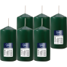 Świeca dekoracyjna w kolorze butelkowej zieleni, kształcie walca, bezzapachowa o wysokości 12cm, średnicy 5,8cm i czasie palenia do 38 godzin BISPOL. Pakowana po 6szt. jednostkowych w opakowaniu zbiorczym.