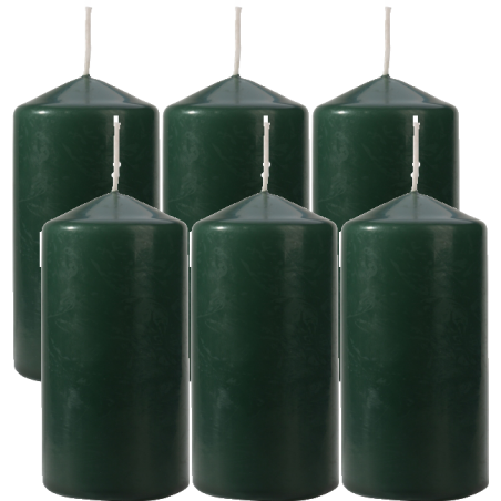 Świeca dekoracyjna w kolorze butelkowej zielenikształcie walca, bezzapachowa o wysokości 12cm, średnicy 5,8cm i czasie palenia do 38 godzin BISPOL. Pakowana po 6szt. jednostkowych w opakowaniu zbiorczym.