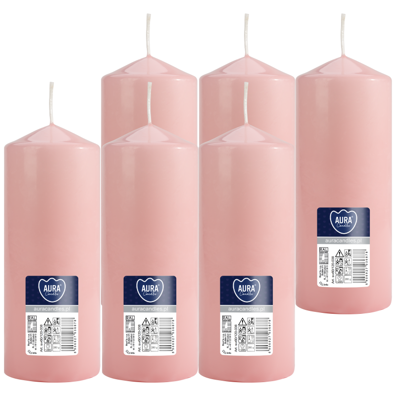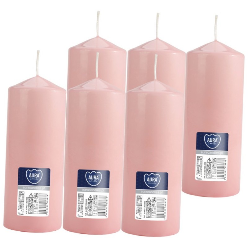 Świeca dekoracyjna w kolorze jasnego różu, kształcie walca, bezzapachowa o wysokości 15cm, średnicy 5,8cm i czasie palenia do 48 godzin BISPOL. Pakowana po 6szt. jednostkowych w opakowaniu zbiorczym.
