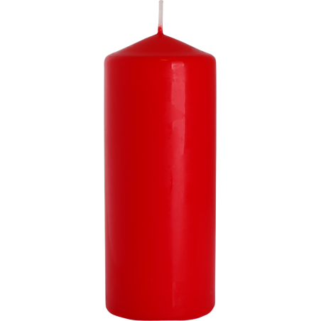 Czerwona świeca dekoracyjna w kształcie walca, bezzapachowa o wysokości 15cm, średnicy 5,8cm i czasie palenia do 48 godzin BISPOL.