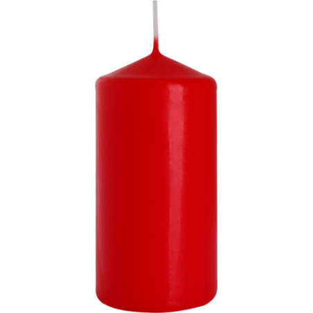 Czerwona świeca dekoracyjna w kształcie walca, bezzapachowa o wysokości 12cm, średnicy 5,8cm i czasie palenia do 38 godzin BISPOL.