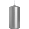 Świeca dekoracyjna w kolorze srebrny metalikkształcie walca, bezzapachowa o wysokości 12cm, średnicy 5,8cm i czasie palenia do 38 godzin BISPOL.