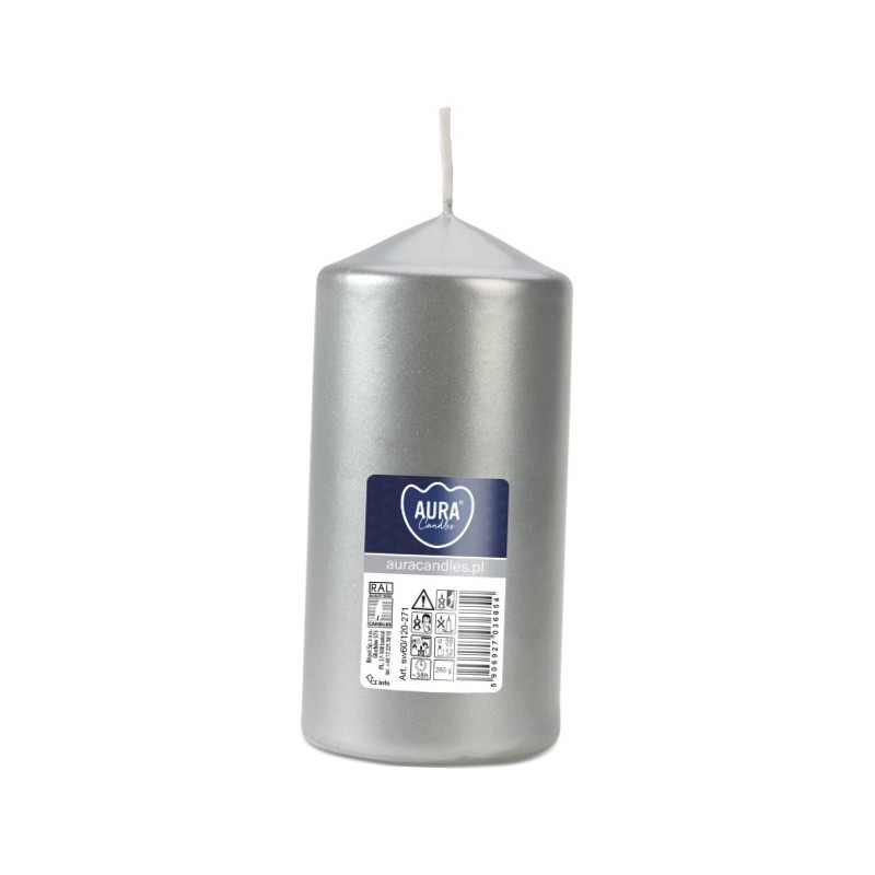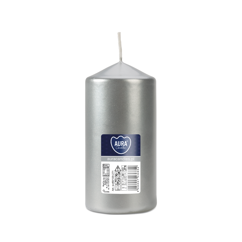 Świeca walec BISPOL Aura 38H 12CM SW60/120 SREBRNY METALIK
