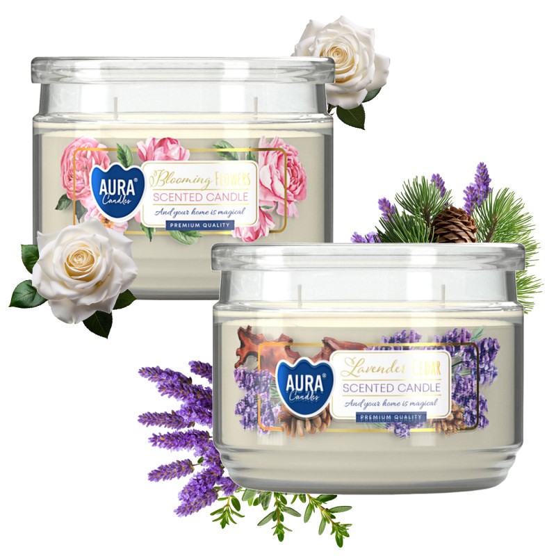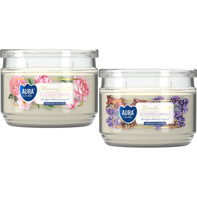 Świeca zapachowa w szkle z pokrywką BISPOL Aura 30H MIX "3" 2szt.