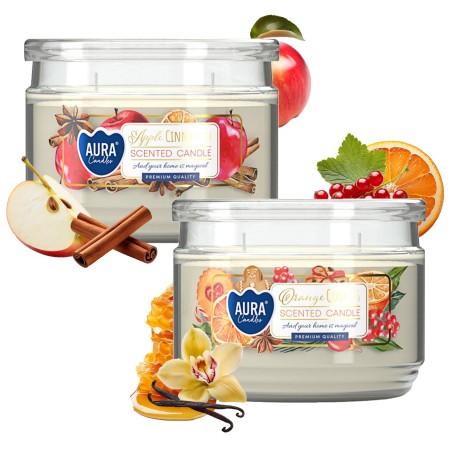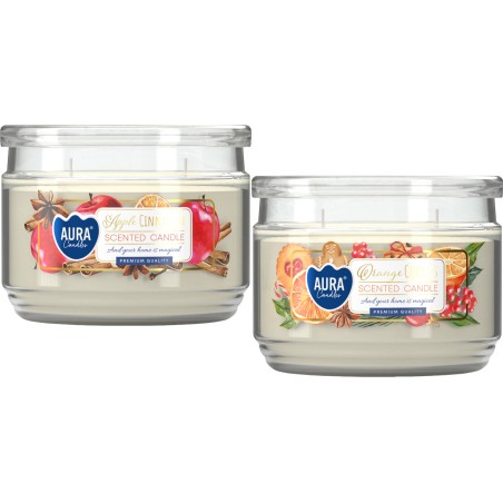 Świeca zapachowa w szkle z pokrywką BISPOL Aura 30H MIX "4" 2szt.
