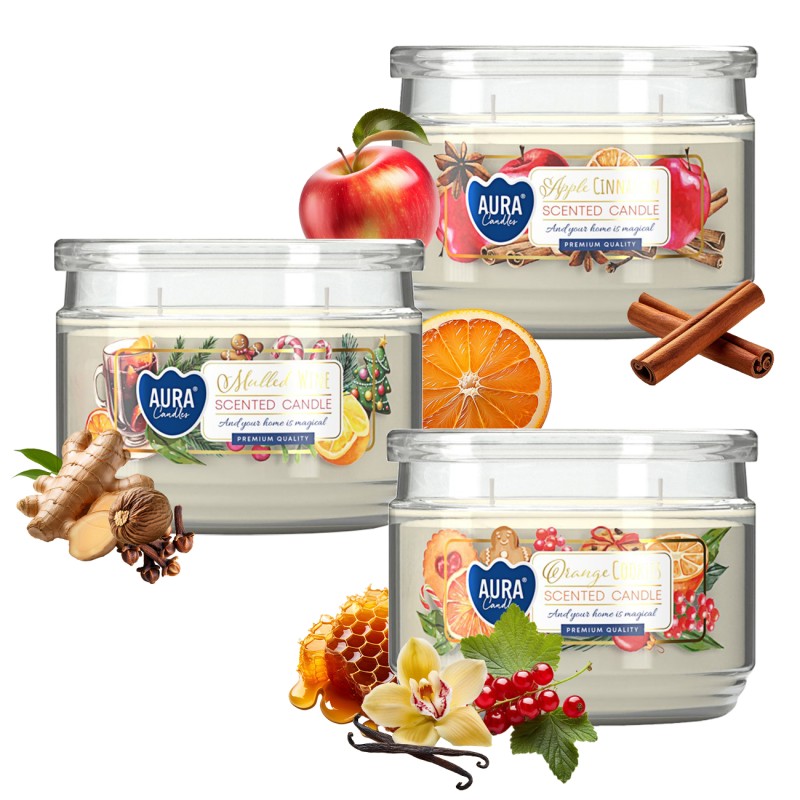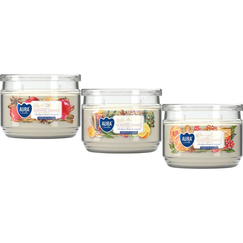 Świeca zapachowa w szkle z pokrywką BISPOL Aura 30H MIX "1" 3szt.