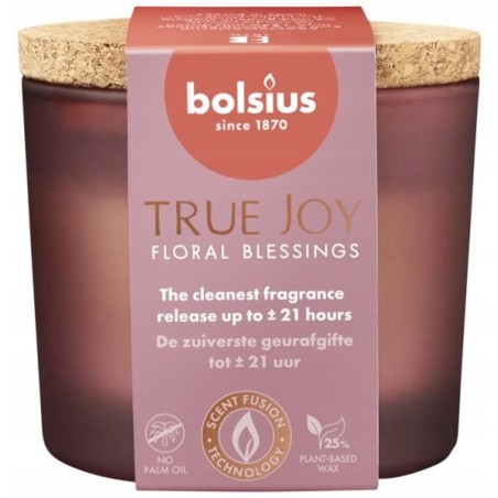 Świeca zapachowa w szkle z wieczkiem, z serii True Joy o zapachu Floral Blessings oraz czasie palenia do 21 godzin BOLSIUS.