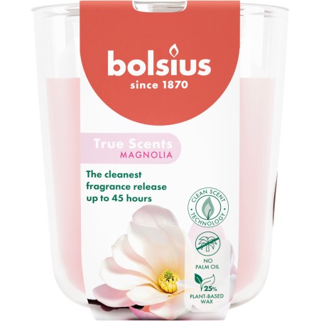 Świeca zapachowa w szkle z serii True Scents o zapachu magnolii oraz czasie palenia do 45 godzin BOLSIUS.