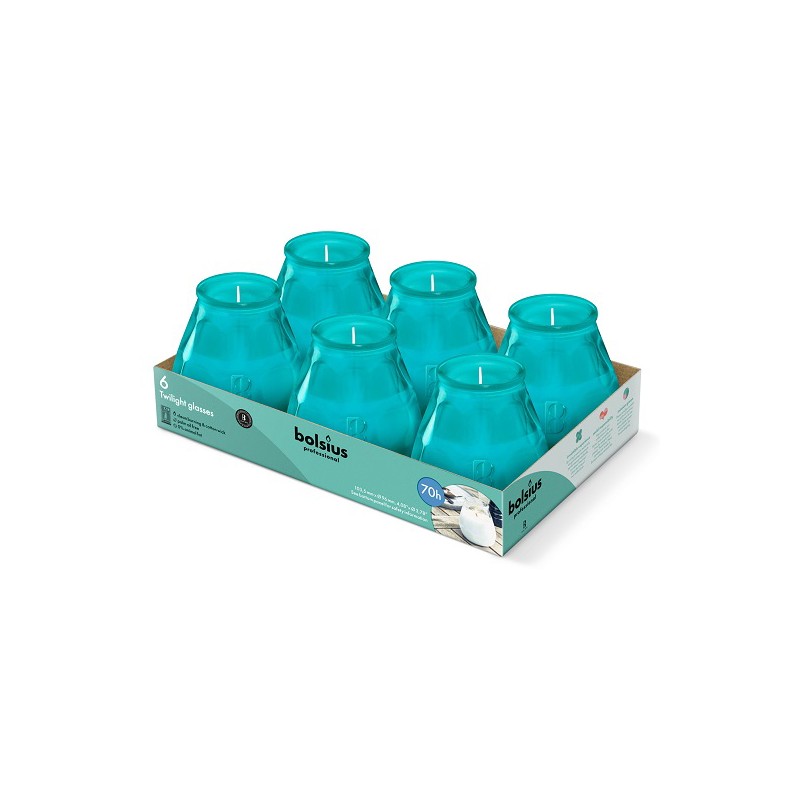 Świeca ogrodowa w szkle BOLSIUS Twilight 70H 6szt. TURKUSOWA