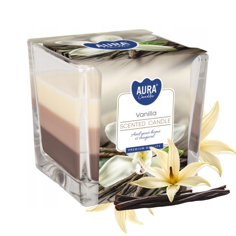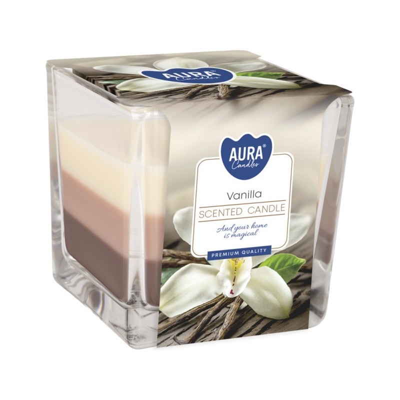 Świeca zapachowa w szkle trójkolorowa BISPOL Aura 32H WANILIA - BURSZTYN