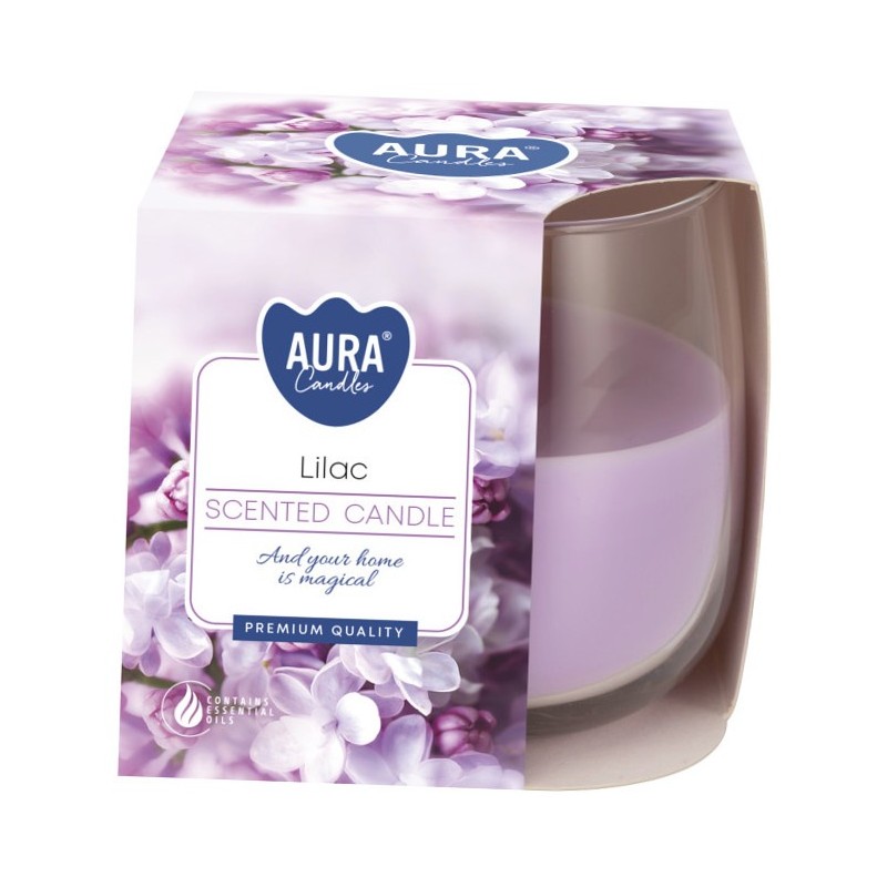 Świeca zapachowa w szkle o zapachu bzu oraz czasie palenia do 24 godzin BISPOL.