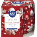 Świeca zapachowa w szkle, ozdobiona folią z motywem bożego narodzenia oraz czasem palenia do 20 godzin BISPOL.