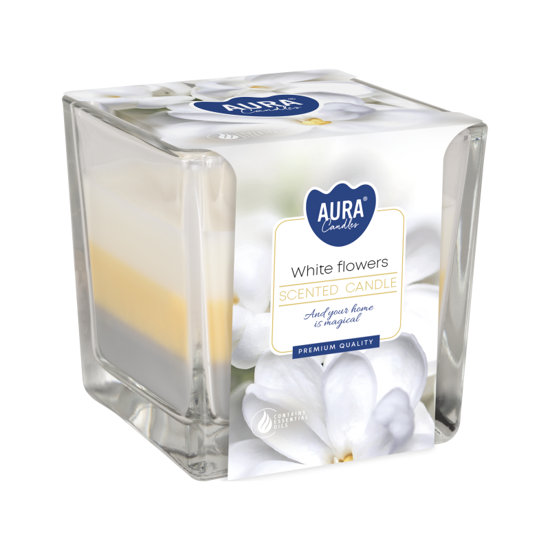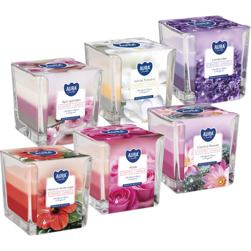 ZESTAW Świeca zapachowa w szkle trójkolorowa BISPOL Aura 32H MIX "9" 2szt.