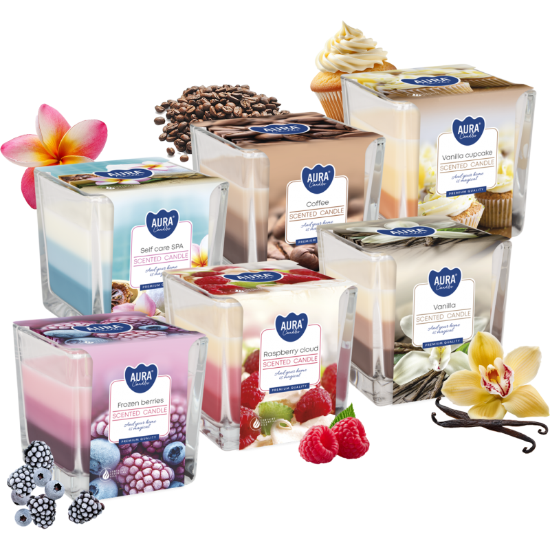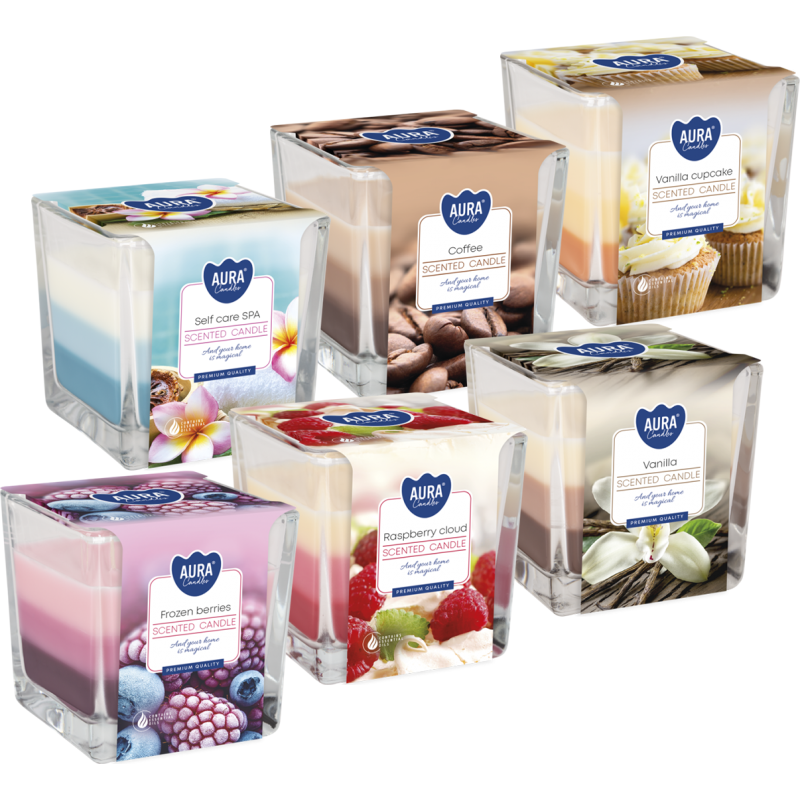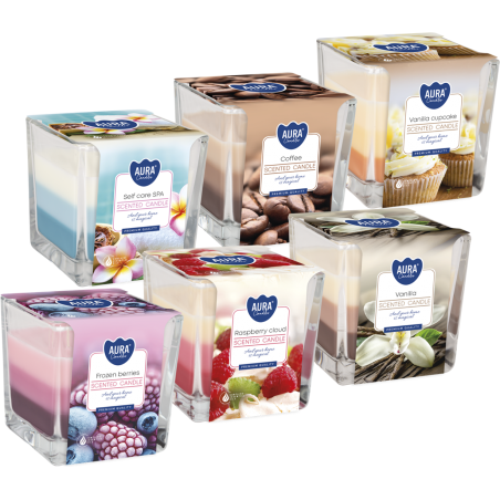ZESTAW Świeca zapachowa w szkle trójkolorowa BISPOL Aura 32H MIX "12" 2szt.