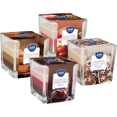 ZESTAW Świeca zapachowa w szkle trójkolorowa BISPOL Aura 32H MIX "12" 2szt.