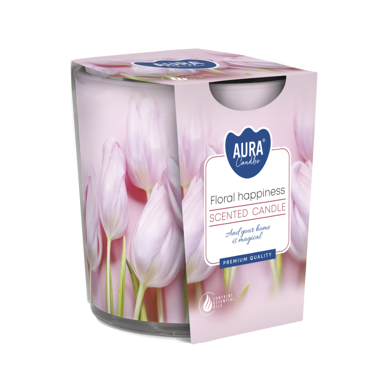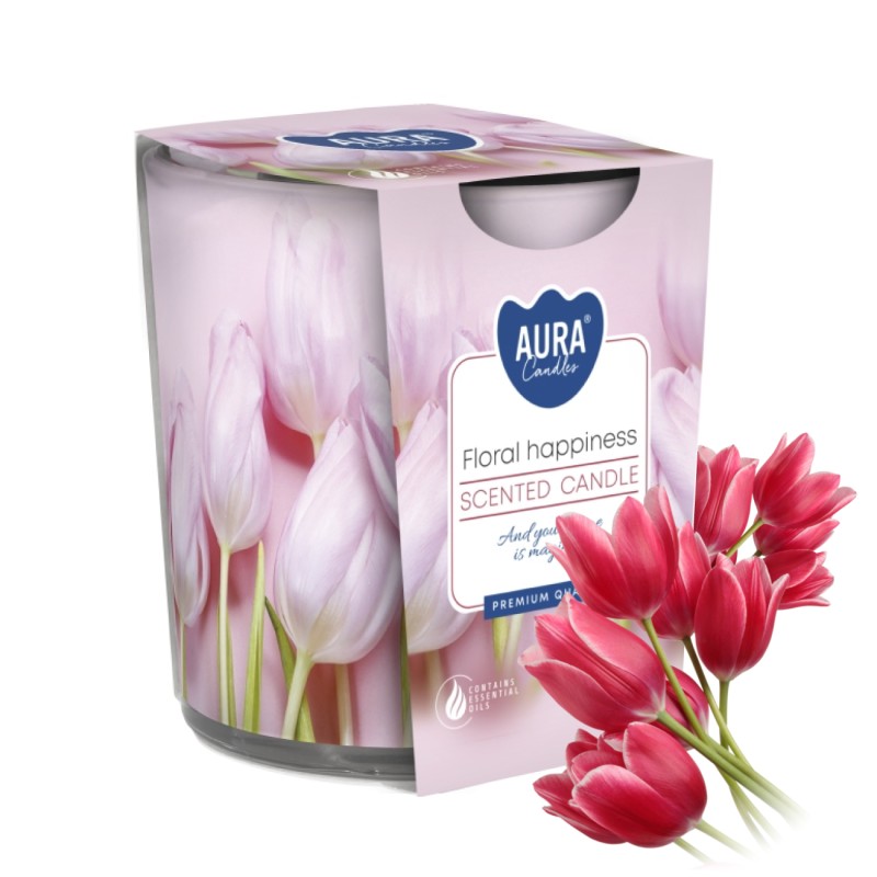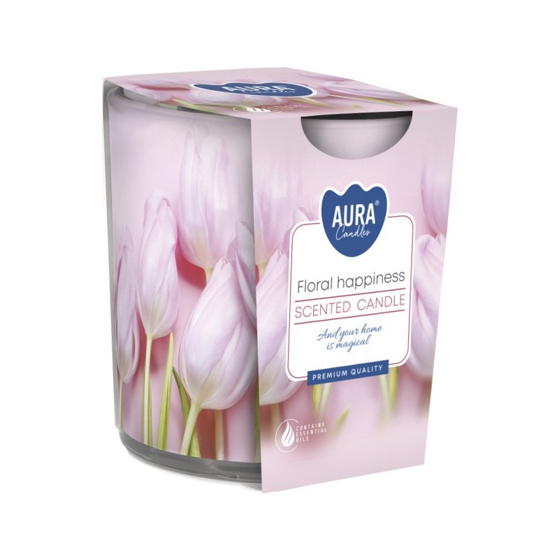 Świeca zapachowa w szkle BISPOL Aura 22H KWIATOWA RADOŚĆ