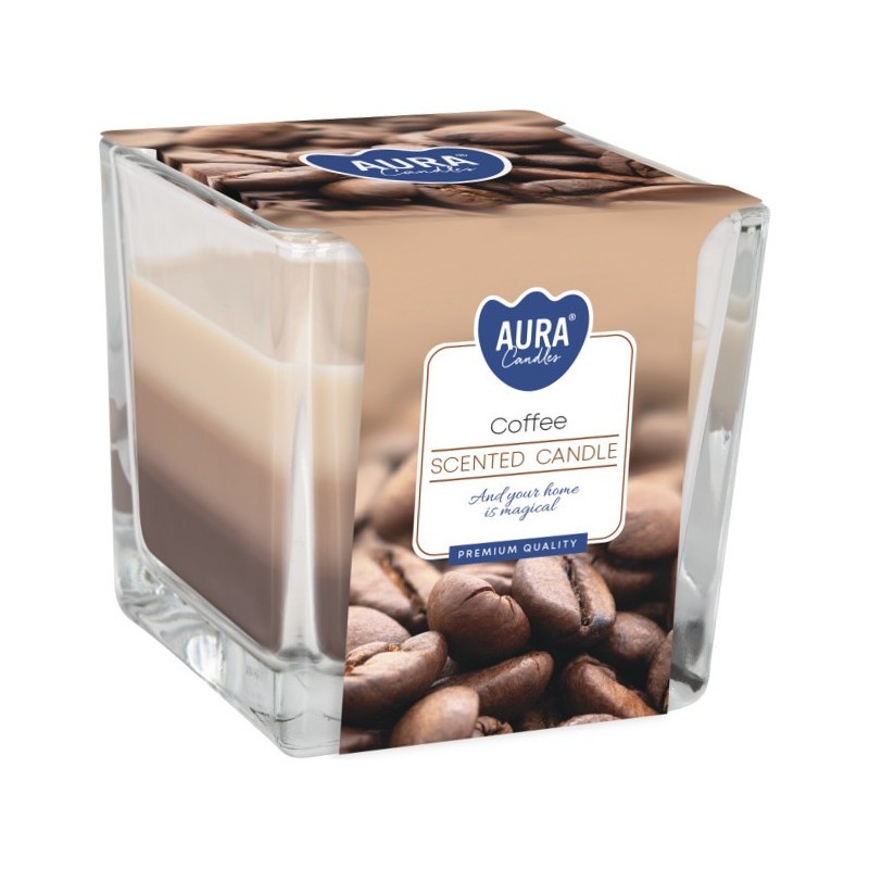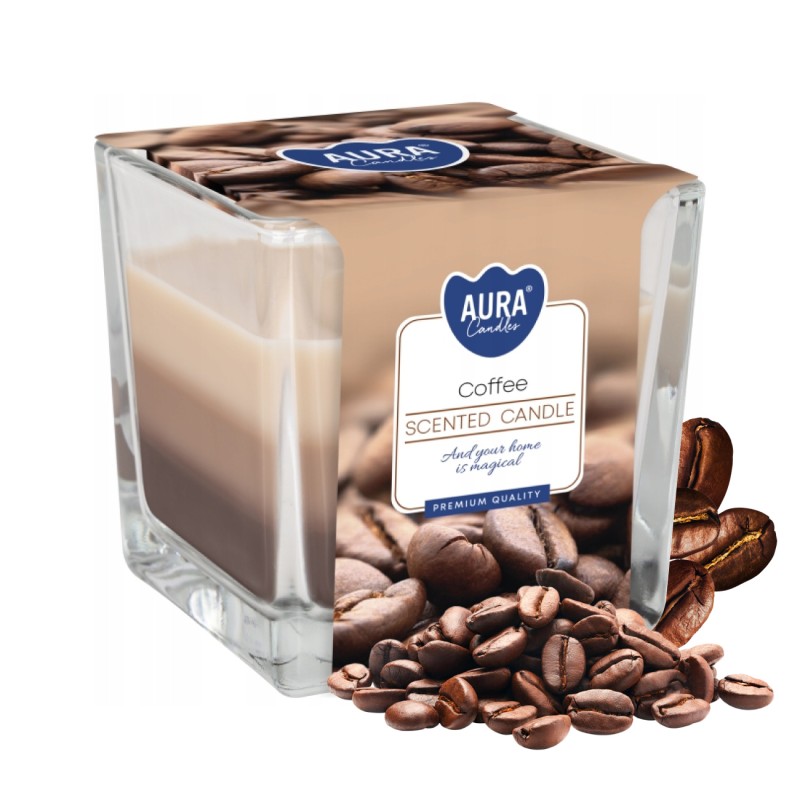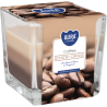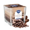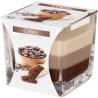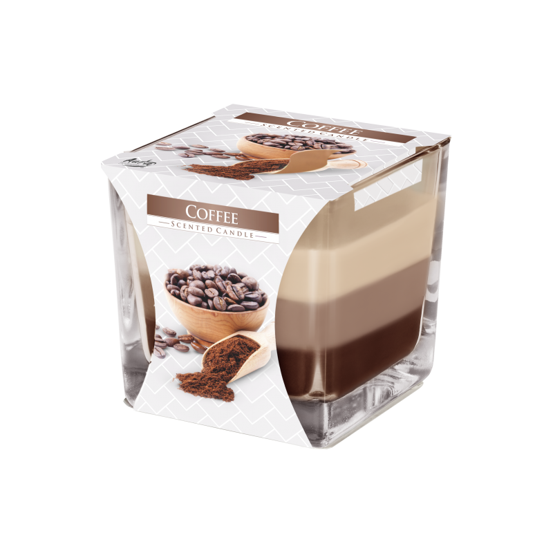 Trójwarstwowa świeca zapachowa w szkle z dwoma knotami, o zapachu kawy oraz czasie palenia do 32 godzin BISPOL.