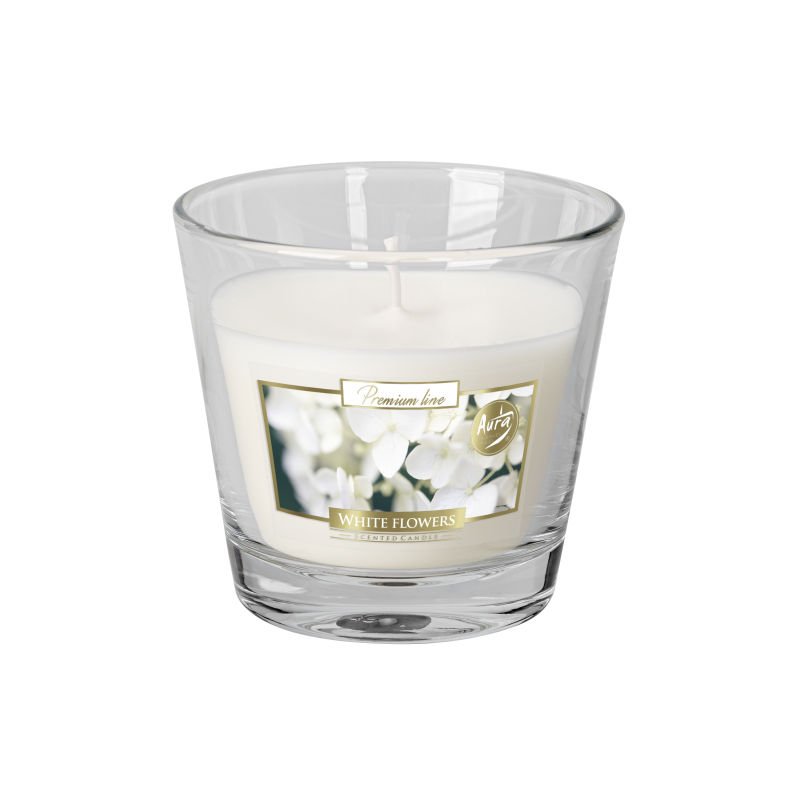 Świeca zapachowa w szkle o zapachu białych kwiatów czasie palenia do 26 godzin BISPOL.
