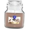 Mała świeca zapachowa w słoiku z wieczkiem, o zapachu kawy i czasie palenia do 28 godzin BISPOL.