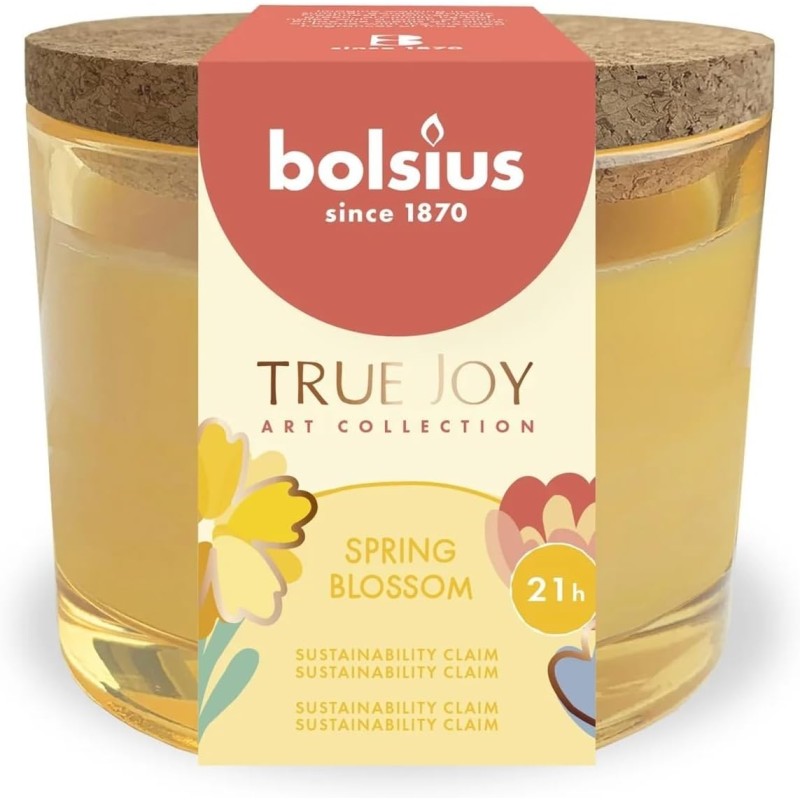 Świeca zapachowa w szkle z wieczkiem, z serii True Joy o zapachu Spring Blossom oraz czasie palenia do 21 godzin BOLSIUS.