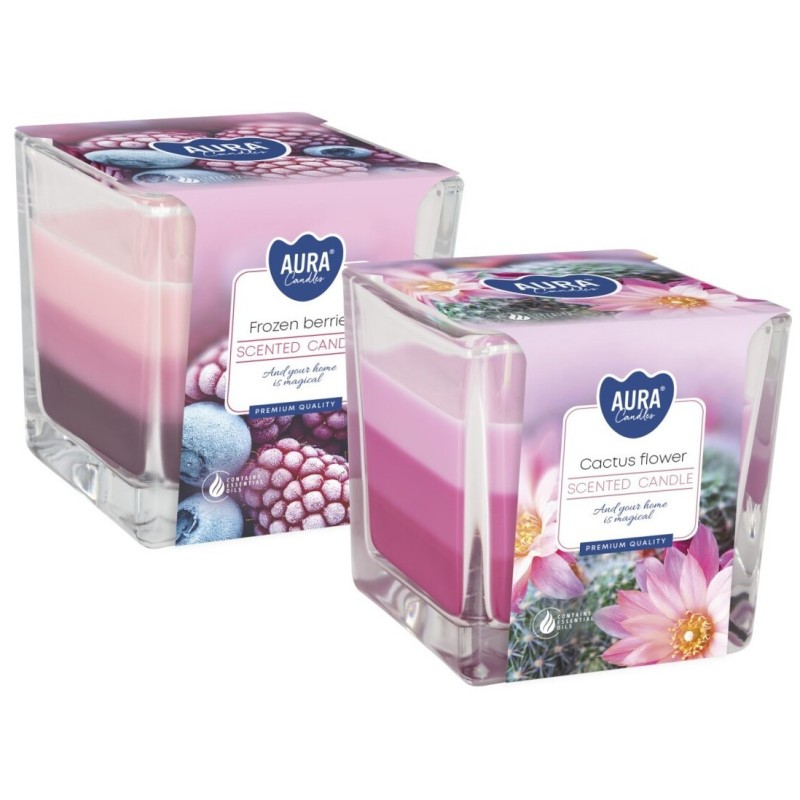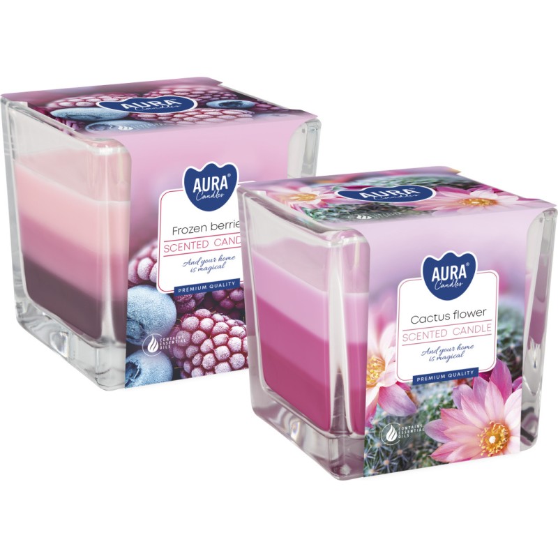 ZESTAW Świeca zapachowa w szkle trójkolorowa BISPOL Aura 32H MIX "2" 4szt.