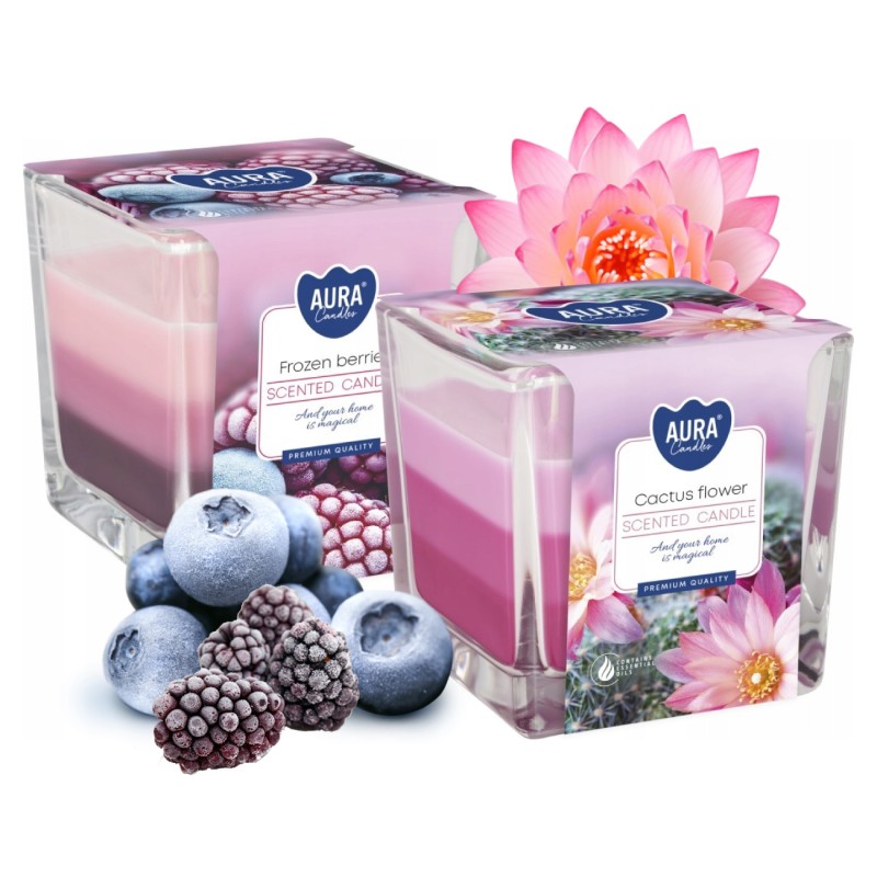 ZESTAW Świeca zapachowa w szkle trójkolorowa BISPOL Aura 32H MIX "KWIATOWY" 6szt.