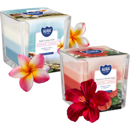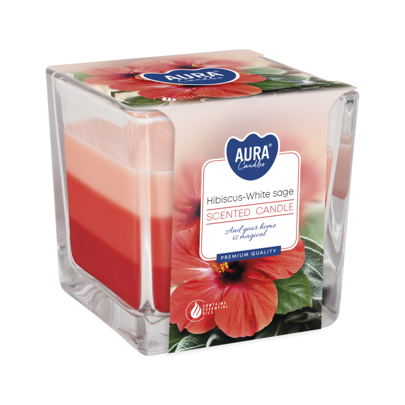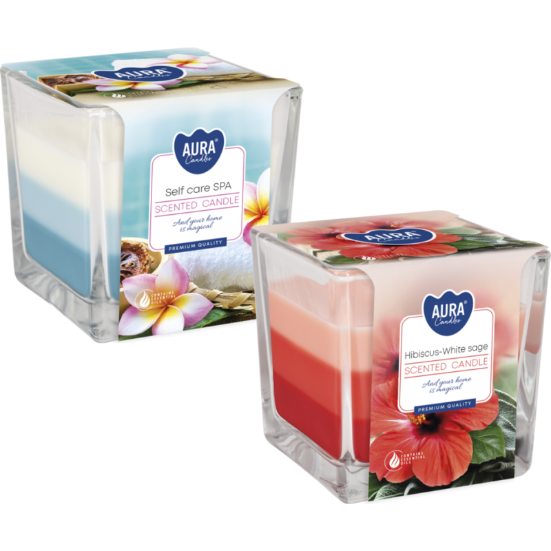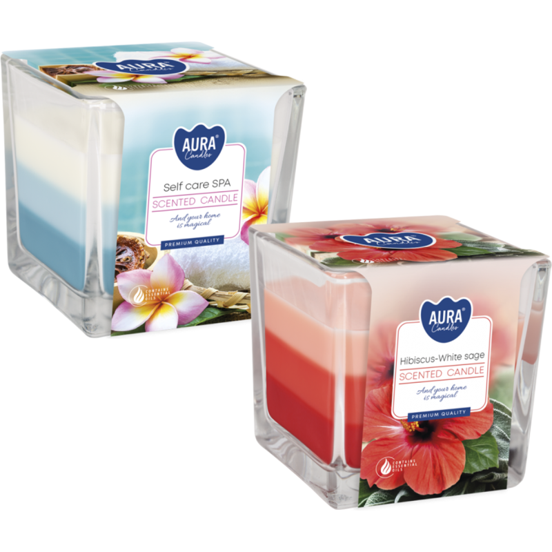 ZESTAW Świeca zapachowa w szkle trójkolorowa BISPOL Aura 32H MIX "2" 4szt.