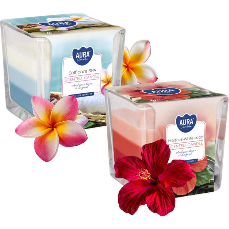 ZESTAW Świeca zapachowa w szkle trójkolorowa BISPOL Aura 32H MIX "KWIATOWY" 6szt.
