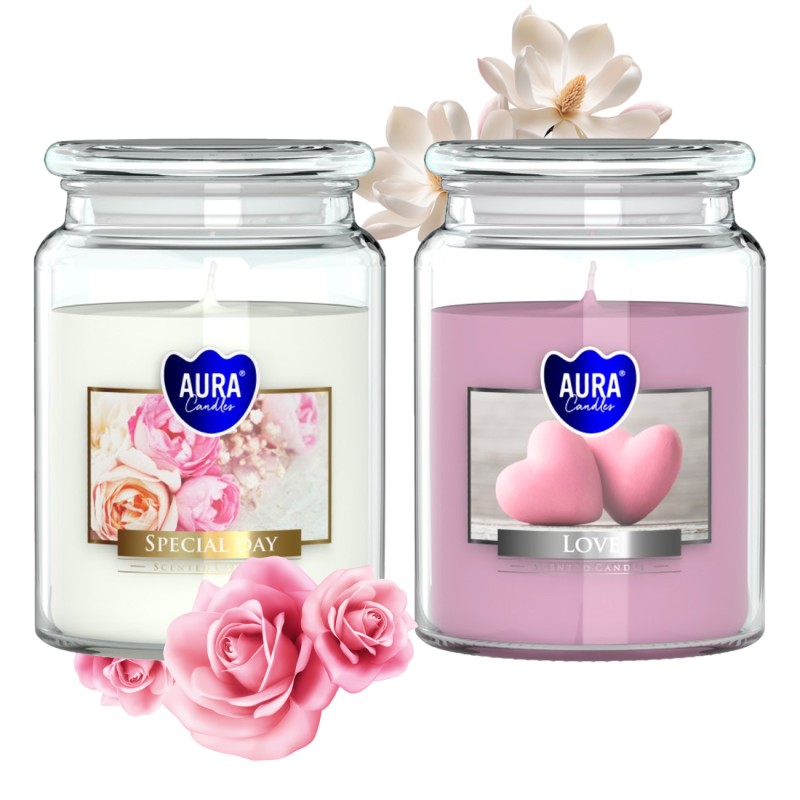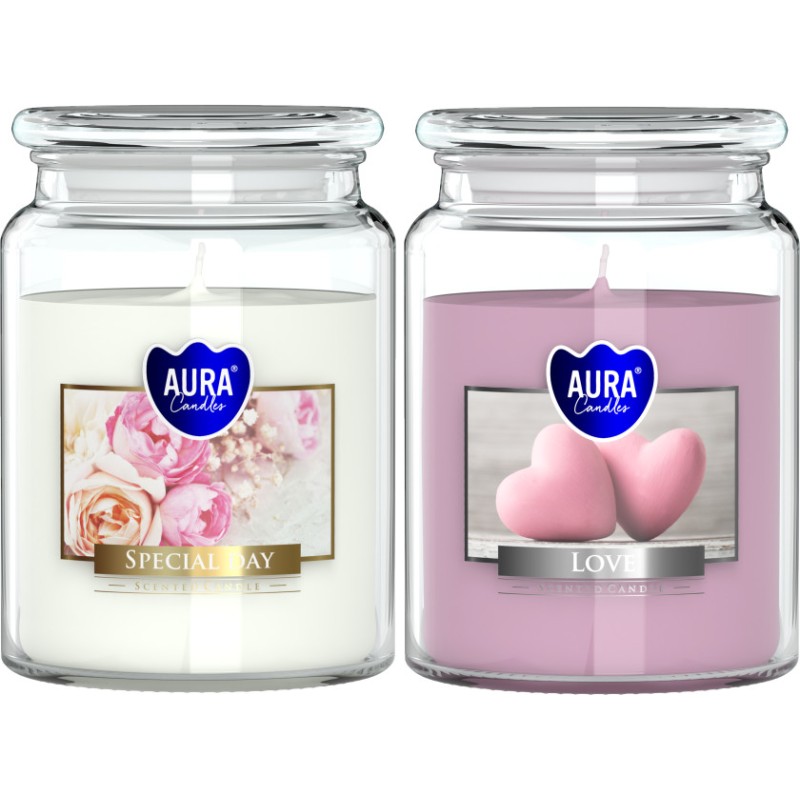 ZESTAW DUŻA Świeca zapachowa w słoiku BISPOL Aura 100H MIX "9" 2szt.