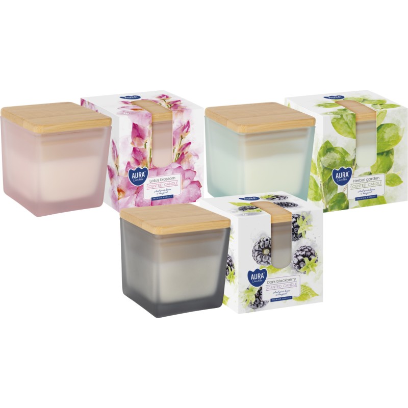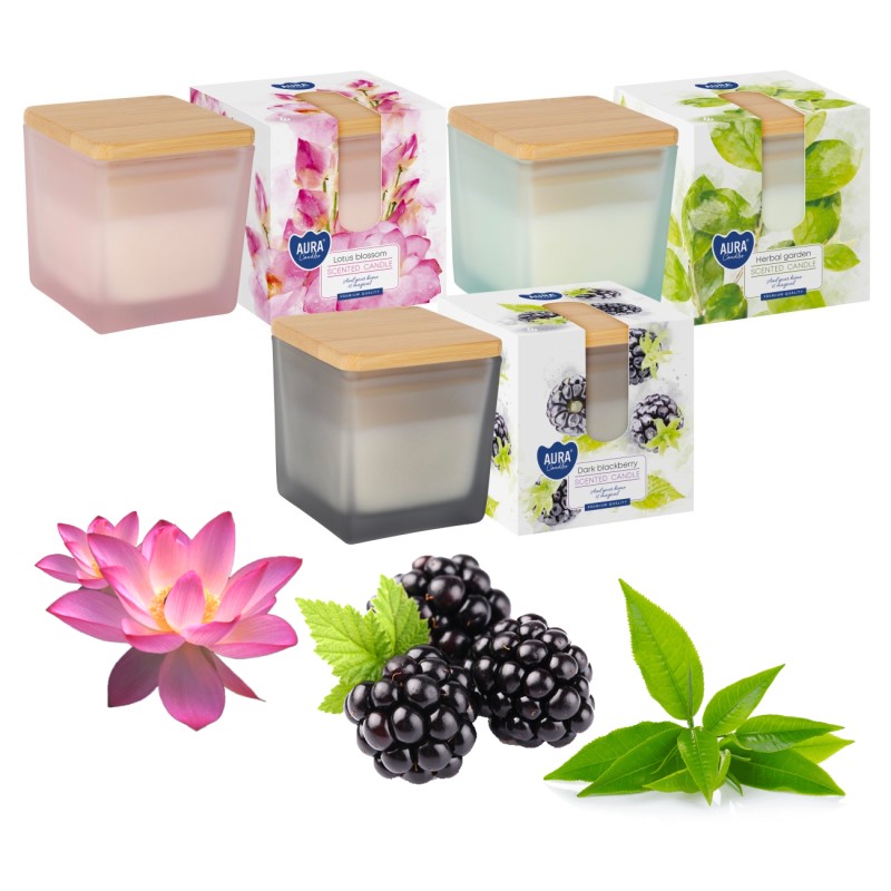 ZESTAW Świeca zapachowa w szkle trójkolorowa BISPOL Aura 32H MIX "KWIATOWY" 6szt.