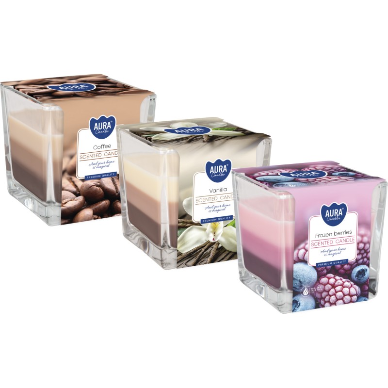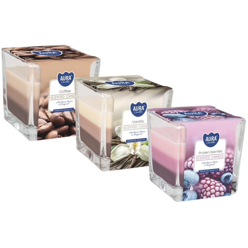 ZESTAW Świeca zapachowa w szkle trójkolorowa BISPOL Aura 32H MIX "7" 3szt.