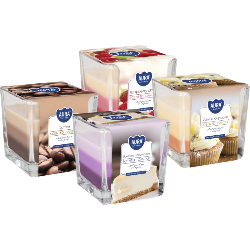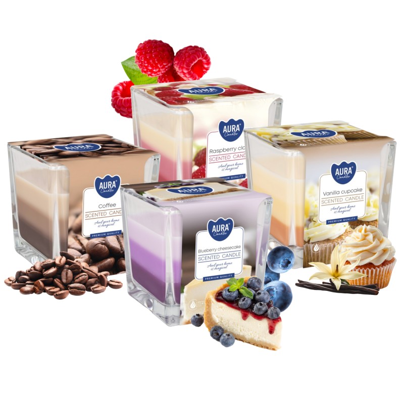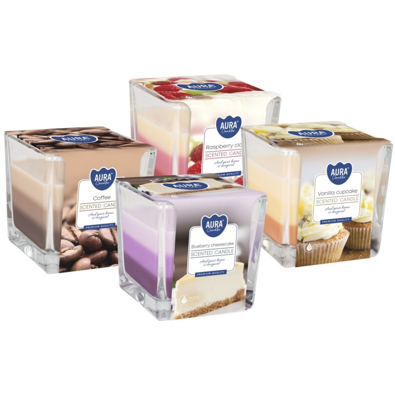 ZESTAW Trójwarstwowych świec zapachowych w szkle z dwoma knotami, w mixie zapachów oraz czasie palenia do 32 godzin BISPOL.