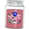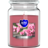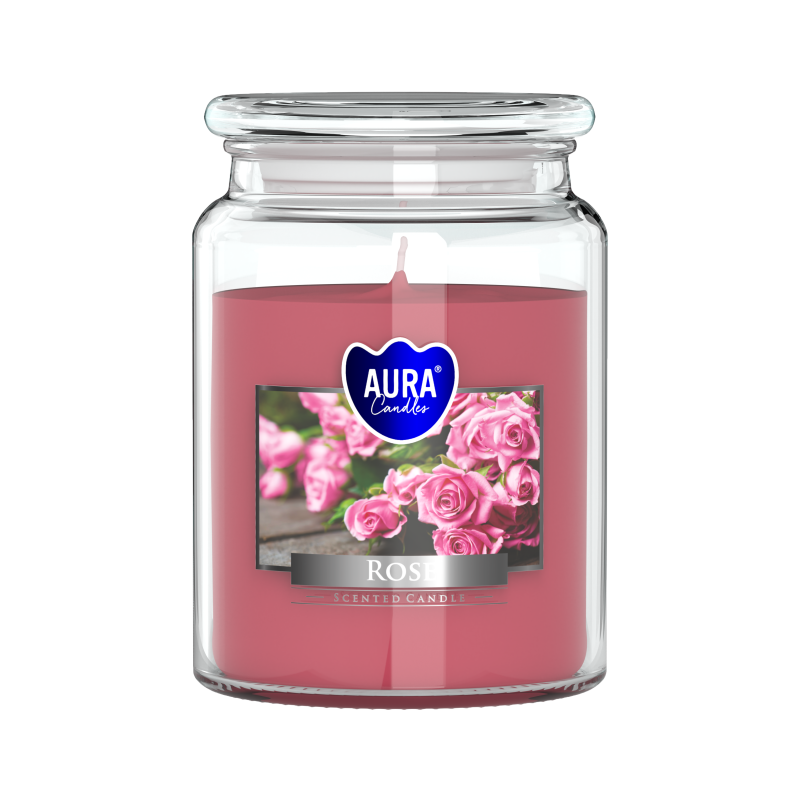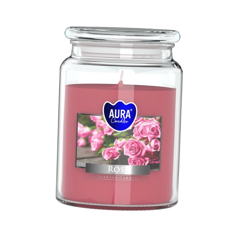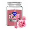 Duża świeca zapachowa w słoiku z wieczkiem, o zapachu róży i czasie palenia do 100 godzin BISPOL.